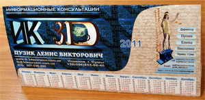- сувенирные и рекламные материалы (календари) - содержат фирменную символику, помогут сформировать и закрепить положительный имидж Вашей компании среди клиентов и деловых партнеров.;