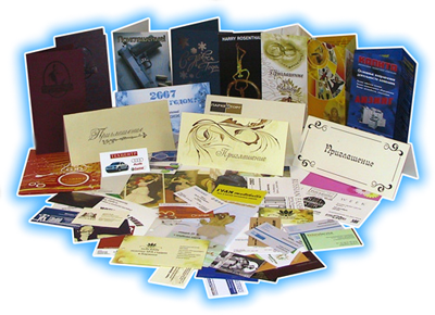 - Полиграфия представительского характера – фирменные бланки, визитки, фирменные папки, открытки, ежедневники, конверты, приглашения, пакеты и т.д.